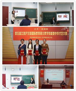 2019年4月20日,由江浙沪汉语国际教育硕士专业学位教学联盟主办、江苏大学承办的“第五届江浙沪汉语国际教育硕士教学技能大赛”在文化名城镇江举行,来自江浙沪17所高校的67名中外汉语国际教育专业的研究生汇聚一堂,切磋技艺。永利yl23411选派4名2018级中外汉硕员工参加这次比赛,取得了二等奖4人次、优秀奖1人次并获“优秀组织奖”的历史最好成绩。