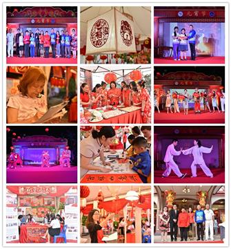 文化展区如火如荼地进行,主舞台上元宵晚会也欢腾地开场了。唐发权先生、陈晓达经理和普朗高(Mr.Prakob wongmaneerung)先后为活动致辞。开幕式主办方领导致辞后,舞台大屏幕上专门播放由普吉孔院制作的元宵节专题片,向现场数百观众生动介绍元宵节、花灯、妈祖文化的典故,赢得阵阵掌声。在锣鼓喧天的舞狮表演后,精彩纷呈的节目一一亮相。普吉孔院带来的双人太极舞蹈行云流水,刚柔并济,配合着音乐张弛有度。而最应元宵佳节喜乐气氛的则是民歌对唱《龙船调》,未见其人先闻其声,几声清唱后,音乐骤响,女老师方款款上台,而男老师则身穿民族服饰,配合摇橹的动作,两人以歌声呼应,高亢婉转。京剧旗袍伴舞则端庄柔美,尽显东方神韵,晚会也在最后一句“好一派新春光景”的京剧念白中落下了帷幕。