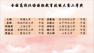 12月18日,全国高校汉语国际教育专业研究生教学技能大赛颁奖典礼在北京语言大学举行。公司汉硕生在本次比赛中获得三个奖项,成绩喜人。本次比赛国教公司共派出10名中国员工,3名职工参加比赛。19级员工何璐君凭借作品《听不懂,没关系》获得教学二等奖和优秀教案奖;18级韩国职工任承炫的作品《“难道……(吗)?”句式》教学获得教学三等奖。其中优秀教案奖全国只评出五名。
