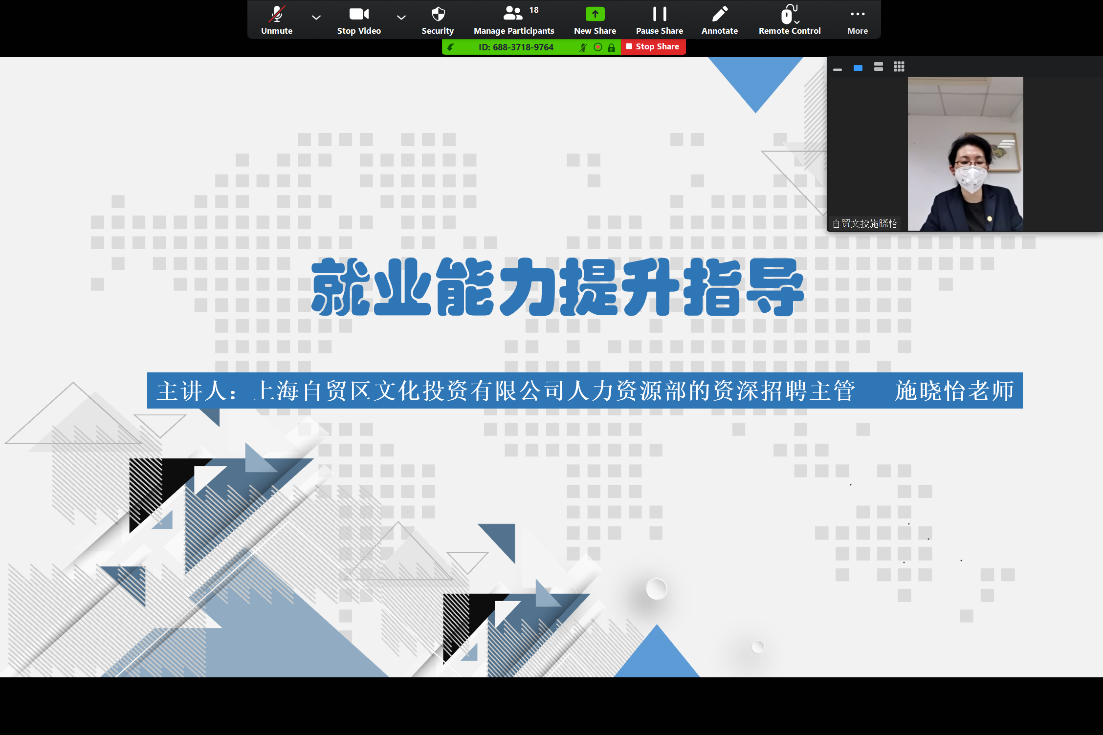 接着,上海自贸区文化投资有限公司人力资源部的资深招聘主管施晓怡老师从简历制作、面试流程、就业能力等多个角度,为员工们分享了她多年的招聘经验,针对当下的网络云面试也提出了宝贵建议,帮助员工提前了解云面试的注意事项。