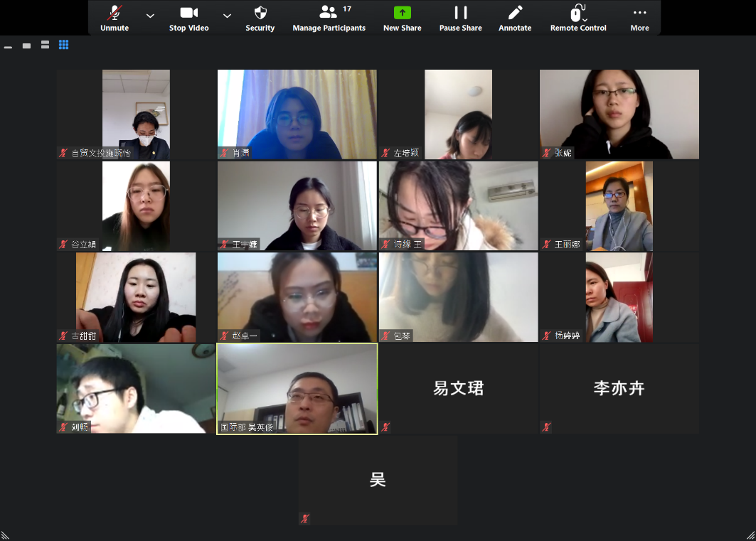 为更好帮助2020届汉语国际教育专业尚未签约工作的毕业生就业,永利yl23411于2020年4月21日下午在ZOOM平台举行专项座谈会,共有12名员工参与了本次座谈。本次座谈会特邀永利yl23411招毕办原副主任傅新华老师、上海自贸区文化投资有限公司人力资源部的招聘主管施晓怡老师与毕业生云端交流,国际部党委吴英俊书记、招毕办吴方刚老师、员工辅导员肖潇老师也出席了本次座谈会。永利yl23411副经理王丽娜老师担任座谈会主持。