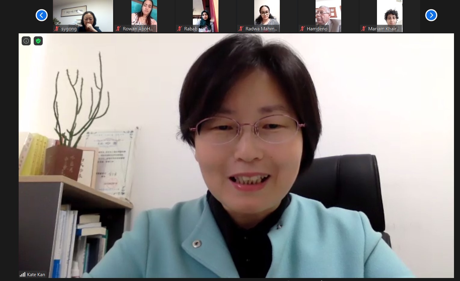 来自亚历山大大学的10名员工参加了此次交流会。他们分享了此次暑期项目的学习成果以及对中国发展和中埃关系的认识与期待,表达了自己对中国文化和学习中文的热爱,此次颇具特色的情境式的汉语教学让汉语学习更加有趣,中国文化、影视、经济、生命科学等板块让他们学到了更多的专业知识,更加深入了解中国,希望以后能有机会到中国学习交流,认识更多朋友,做好中埃友好的桥梁。