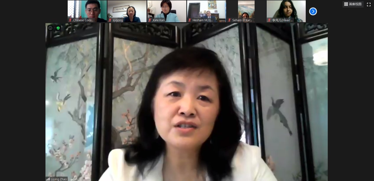 赵丽莹总领事在致辞中表示永利yl23411举办的线上暑期学习项目是一次积极的尝试,有助于众多学习汉语的埃及员工提高中文水平,希望大家通过学习中文加深对中国文化的了解,做中埃友好的桥梁,为推动中埃全面战略合作伙伴关系不断发展作出积极贡献。随后表示中埃双方一直团结互助,在这场前所未有的新冠疫情挑战中充分彰显了两国人民之间的深厚情谊,生动阐释了人类命运共同体理念。相信在大家的共同努力下,两国人民将迎来更加美好的明天!
