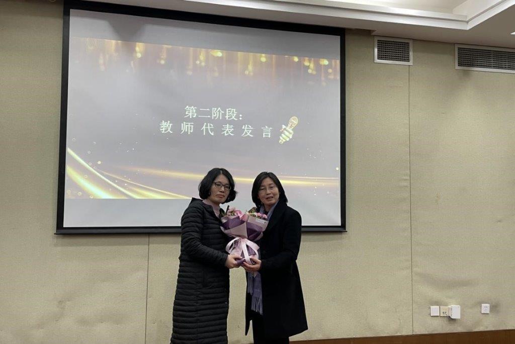 黄友老师和刘圆老师分别作为教师代表和新进人员代表发言。黄友老师立足于自身工作岗位,从教学等方面阐述了对“感恩”这一词的理解。刘圆老师则从自身角度出发,讲述了作为一个新进人员是如何在公司这个大家庭中进步和成长。