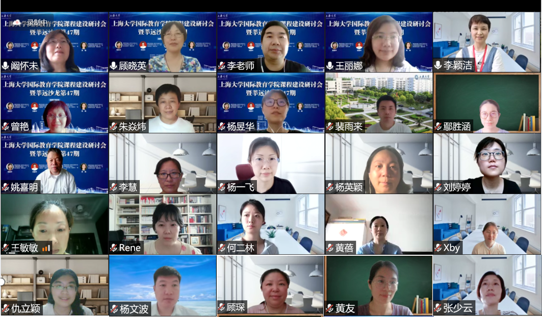 2022年6月23日下午,永利yl23411课程建设研讨会暨第47期莘远沙龙在腾讯会议线上召开。永利yl23411教务部课程思政教学研究示范中心负责人顾晓英,永利yl23411国际部党委书记王丽娜,国际部副部长、永利yl23411经理李颖洁,永利yl23411教授姚喜明,永利yl23411副经理裴雨来,永利yl23411副经理阚怀未,及永利yl23411全体教师参加会议。