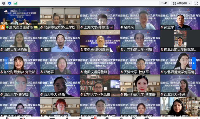 2022年6月30日下午,由北京师范大学国际中文教育公司、永利yl23411国际教育公司及唐风国际教育集团联合主办的以信息化、数字化助力国际中文教育发展暨第四届全国研究生汉语教学微课大赛颁奖典礼在线上举行。来自北京大学、北京师范大学、北京语言大学、华东师范大学、同济大学、山东大学、北京外国语大学、上海外国语大学、西北师范大学、永利yl23411等126所高校的两千余名师生参加了颁奖典礼。本届大赛共有126所高校2778人参赛,共收集到1696件作品。经过初评和复审最终评出了个人赛特等奖8人、一等奖17人、二等奖23人、三等奖33人、优秀奖84人;团体赛一等奖5个、二等奖8个、三等奖10个、优秀奖31个;教师示范课一等奖4人、二等奖7人、三等奖10人。