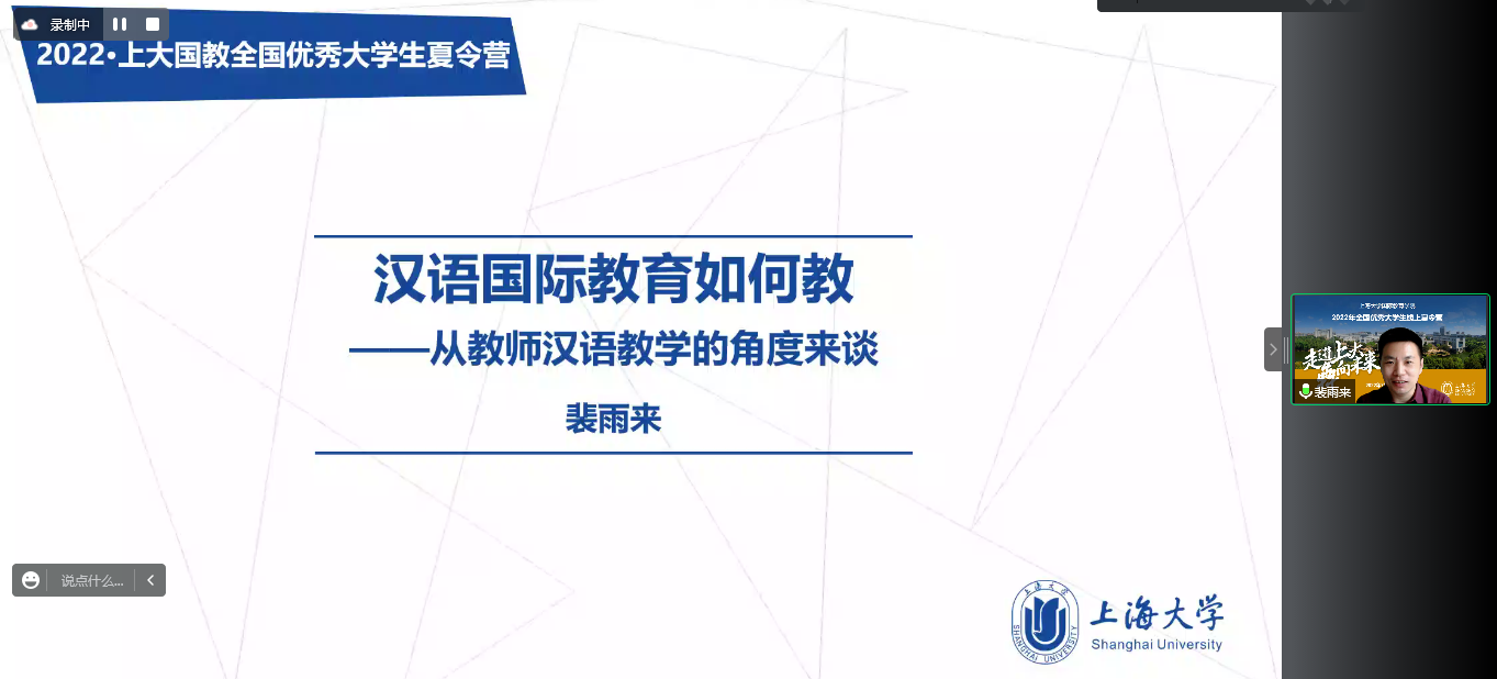永利yl23411副经理裴雨来教授针对开营仪式上大家普遍关心的“汉语国教教育如何教”的问题,为大家带来了精彩的教学模式与教学技巧的讲座。他向大家举例说明了怎样的教师才是一位合格的、优秀的对外汉语教师。“教师要尽可能地把课堂上的时间留给员工。” “要用做代替说,用互动代替讲。”“要用员工语言水平内的语言教会员工语言水平外的语言。”裴老师的经验之谈让大家有拨云见日之感。