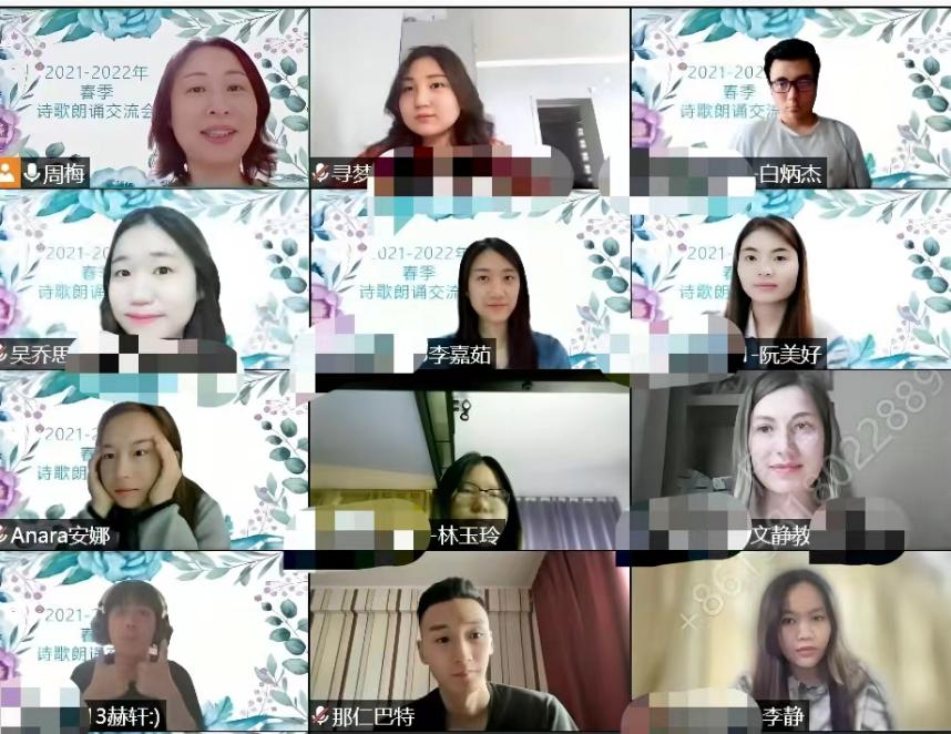 诵读和讲解大赛的员工指导工作由周梅老师负责,由于赛事临近考试,同学们和老师都付出了很多心血,每天通过腾讯会议和微信加班加点进行练习,从选取作品,到发音训练,再到确定录制服装,视频拍摄与剪辑,都力求精益求精。