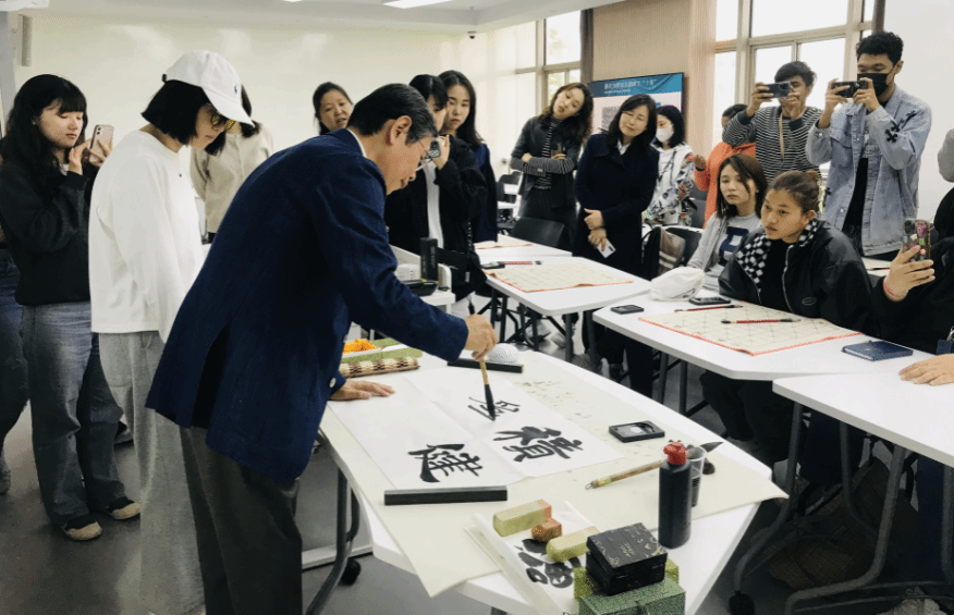 随后,崔教授又向大家解释了中国文人的“雅文化”和中国书法所涵盖的“婉约雅致、天人和谐、刚柔相济、有无相生”等特有的文化观念。在国际传播方面,崔教授身体力行,让中国书法艺术走向世界。