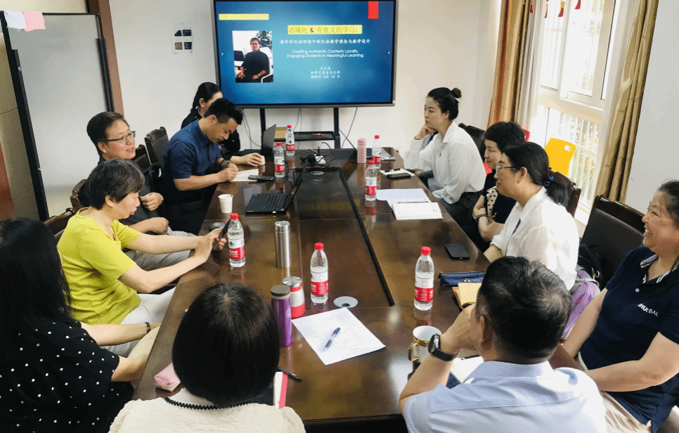 互动交流环节,公司教师就语境化汉语教学设计等问题,与王教授进行了深入讨论,大家进一步认识到要有策略地设计语境进行有意义的汉语教学,在现实生活中运用学习策略和经验解决问题,重视体验式教学,带员工进入交际互动的语境。