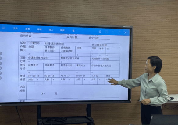 院督导组李慧老师就公司本科评估材料自查情况做了总结,列举了一些常见性错误;教研室主任李文韬老师对教研室评估材料的自改做出了具体部署。李文韬老师还通报了近期的本科教学工作。最后,陈颖老师列举了教务管理上的注意事项。