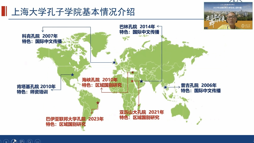永利yl23411孔子公司办公室主管金祺老师向营员们介绍了永利yl23411的孔子公司及国际中文教师志愿者项目,为大家播放了志愿者们在海外孔院工作、生活的小视频,并鼓励大家投身国际中文教育事业,到海外孔院去一显身手。