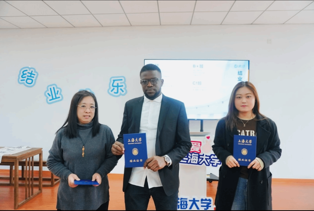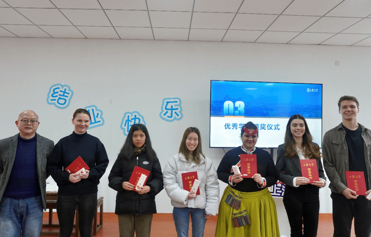 同学们在认真学习之余,还积极参加了公司举办的各项活动并取得了优异的成绩。他们分别是:荣获菊文化节书画摄影展的C1班摩洛哥同学马克、C1班土耳其同学白莎、B+班韩国同学李受珉、B+班爱尔兰同学吴采璇、B+班罗马尼亚同学裴丹娜 、B+班爱尔兰同学黄祖恩、 B+班罗马尼亚同学彭琴雅、B+班克罗地亚同学安东以及D班越南同学武德胜;在最美笔记比赛中获奖的D班越南同学邓氏秋;C2班的越南同学麦永成每周坚持在虹口区嘉兴路社区卫生服务中心做志愿者,荣获最佳奉献奖。王丽娜书记为以上同学颁发了证书和奖品。