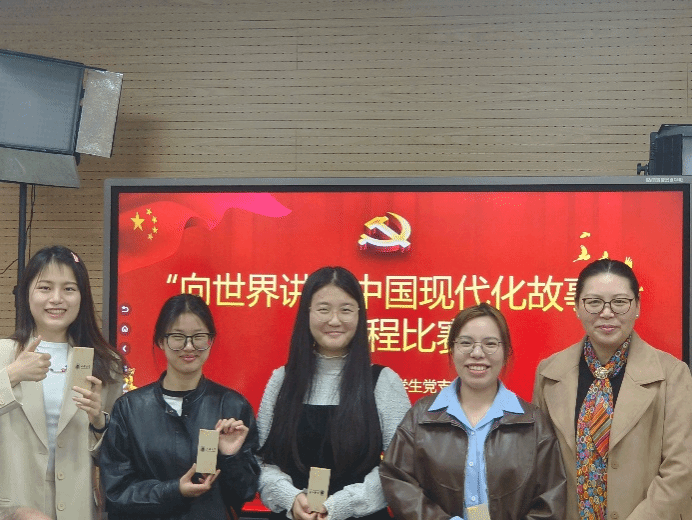 党的二十大报告明确提出,“加快构建中国话语和中国叙事体系,讲好中国故事、传播好中国声音,展现可信、可爱、可敬的中国形象。”中国式现代化故事是中国故事的重要内容,也是让世界读懂中国共产党、读懂中国、读懂中华民族的重要载体。参赛的各位党员同志充分利用语言及教学优势,成为了中国和世界沟通的桥梁,用心用情向世界讲好中国式现代化故事,阐释好中国式现代化道路的世界意义。未来,支部党员同志将继续加强理论学习,培养专业能力,厚植家国情怀,贯彻落实党的二十大精神,做中国式现代化新征程上的先锋力量。