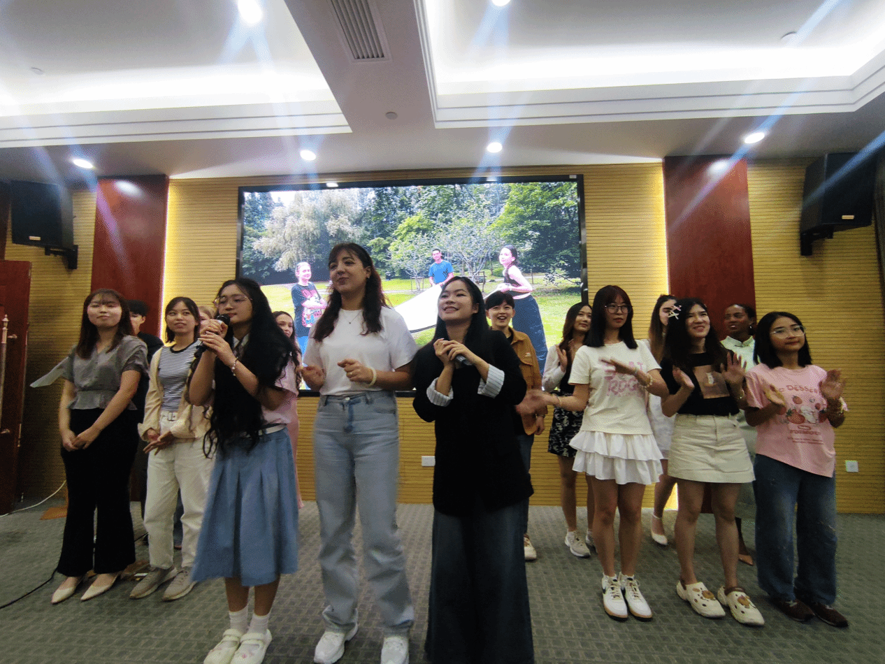 为了庆祝这一难忘的时刻,同学们带来了精心准备的节目。E班同学朗诵了李清照的宋词《如梦令》、A+班带来合唱《朋友》、D1班带来合唱《再见》、A班同学演唱《甜蜜蜜》。现场气氛热烈,精彩的表演赢得了大家的阵阵掌声。