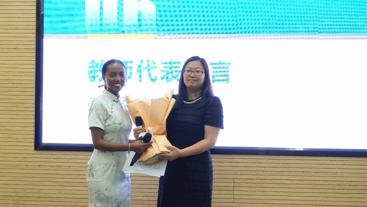 教师代表彭琼丽老师为同学们带来最后一课。彭老师希望同学们可以运用学到的汉语知识和中国文化,在世界各地播撒友谊和和平,为世界的繁荣和发展做出贡献。