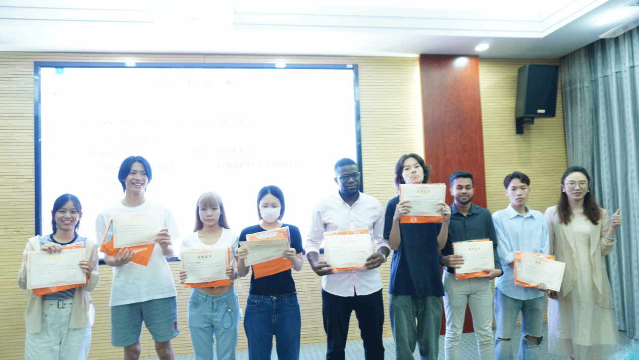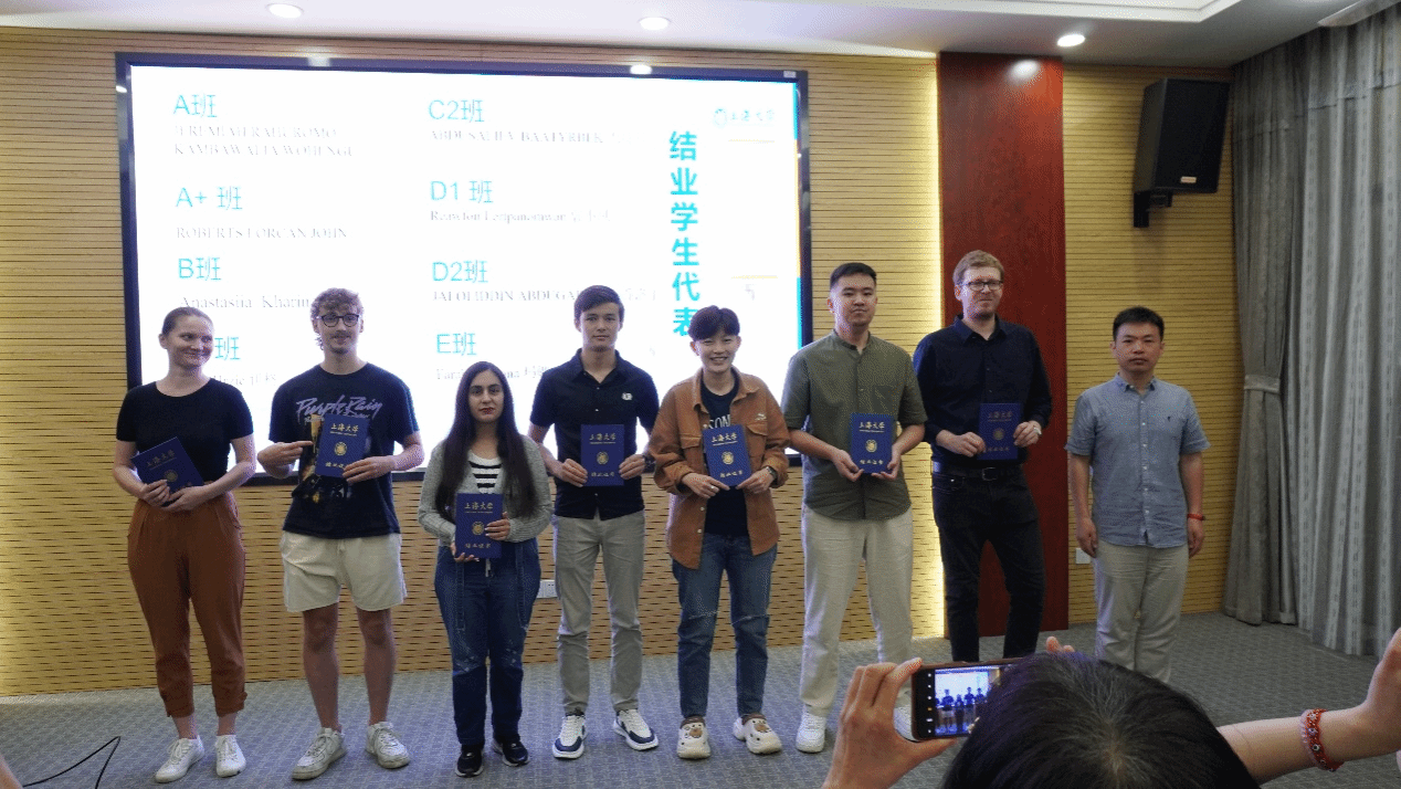 这学期,有九名同学坚持每天来上课,被评为全勤员工。国际员工项目中心副主任黄鑫老师为A班李斯玉、A+班福冈飒希、B班羽田理咲子、大冢真由、市川和义、陈佳丽、C1班阿里、D1班卢苇思以及E班裴玉明九名同学颁发了荣誉证书和奖状。