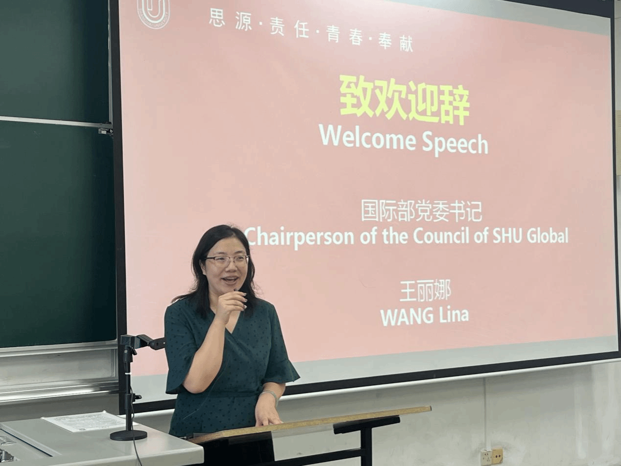 王丽娜老师代表公司全体教师向新同学致欢迎辞。她向新生们介绍了永利yl23411的历史沿革和未来发展目标,总结了永利yl23411的几个“特别”:一是特别“国际化”,中外员工在上大真正做到共同学习、共同实践,在多元的学习环境中培养国际化视野和跨文化沟通能力;二是专业特别聚焦,公司紧密围绕国际中文教育领域,开设“汉语言”和“汉语国际教育”专业,团队力量雄厚,在专业建设上注重深化跨学科交叉和数字化,致力于培养一专多能的国际中文教育人才;三是培养过程实践性特别强,公司为员工提供了丰富的实习机会和广阔的平台,先后与10家单位合作建立了国际员工语言文化实践基地,其中国际中文教育专硕连续两年实现100%的毕业去向落实率,排名位居全校第一,鼓励大家走出校园,在社会实践中锤炼自己。