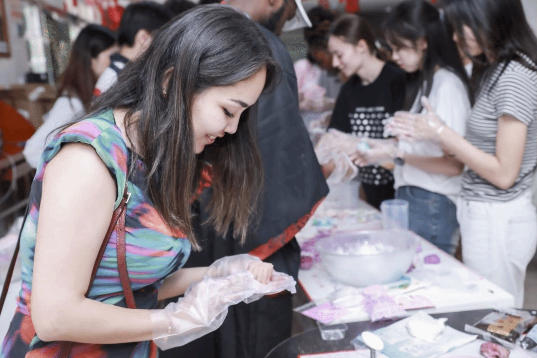 最后,师生共同体验手工制作冰皮月饼。在国际中文教育专业硕士生王艺霏、李欢的指导下,国际员工们从和面、揉捏、包馅到压花、成型、装袋,亲手制作出自己心目中的“Mooncake”,有的图案精美,有的充满寓意,每块月饼都承载着他们对家人、朋友深深的祝福与爱意。更有同学忍不住品尝起这份独一无二的甜蜜,感受着中秋节的温馨与幸福。