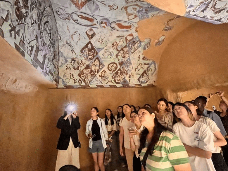 在数字技术还原石窟,大家仿佛瞬间“穿越”到新疆的克孜尔石窟,不可移动的千年石窟艺术以高仿实体的形式展现在大家面前,直观地看到洞窟内结构、壁画故事,欣赏经过数字