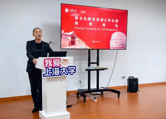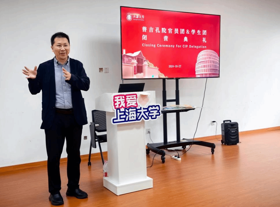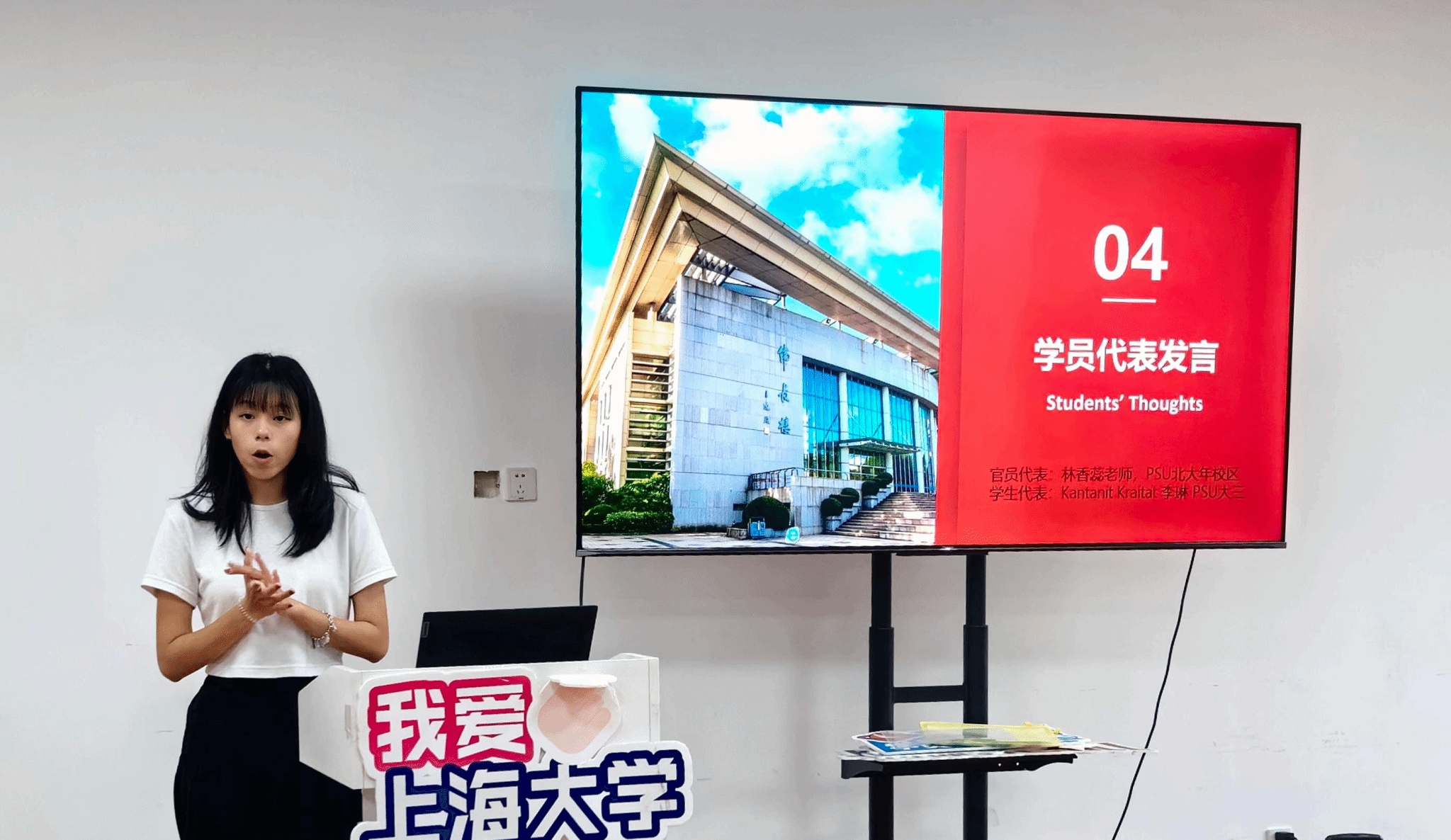 接着,国际部孔子公司办公室的金祺老师以温馨而亲切的话语带我们一同回顾了这十三天的上海之旅。金老师表示在这段宝贵的时间里,各位来华的泰国老师以及同学们亲身体验了上海的蓬勃发展和深厚的历史底蕴,希望这次上海之行能够成为人生中最珍贵的回忆之一,并将这份回忆讲述给身边的家人朋友们。这次的访学活动不仅是年轻学子们成长的见证,更是我们两校之间深刻友谊的见证。