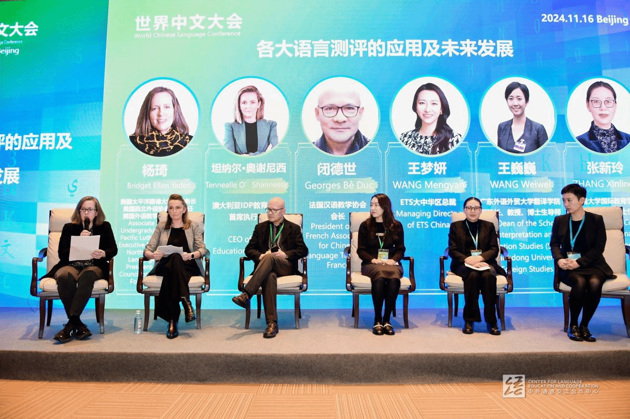 11月16日下午,张新玲教授还受邀与来自美国、澳大利亚、法国等国际重要语种的考试专家就“各大语言测评的应用及未来发展”进行了专家研讨和发言。其团队的最新的译作《国际中文教学通用课程大纲》(Curriculum for International Chinese Language Education)同步由上海外语教育出版社出版,并在世界中文大会向全球发布。