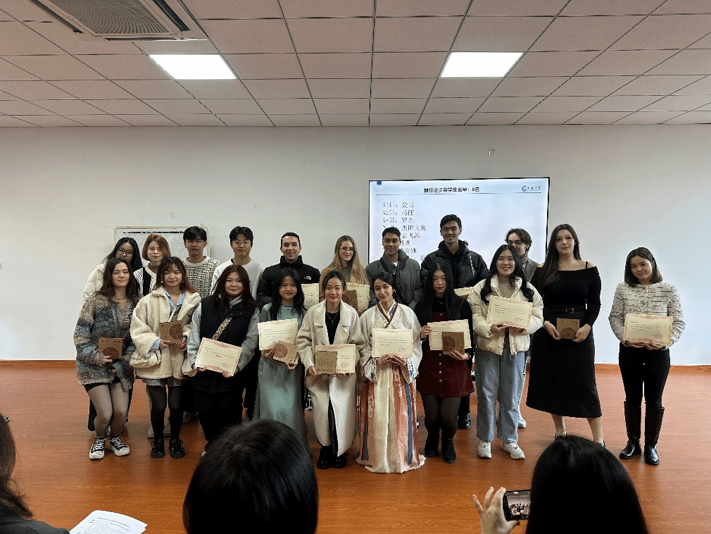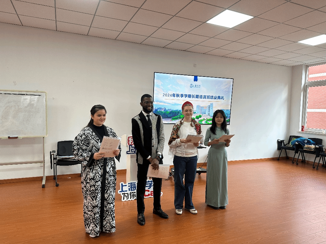 1月10日上午,永利yl234112024年秋季学期长期语言班结业典礼在延长校区顺利举办。永利yl23411国际部党委书记王丽娜、国际员工项目中心教学副主管曾艳老师、任课教师及项目中心工作人员和国际员工们共60多人到场参加。结业典礼由俄罗斯员工伊丽莎白、津巴布韦员工周文轩、塔吉克斯坦员工牟雪、越南员工小初共同主持。